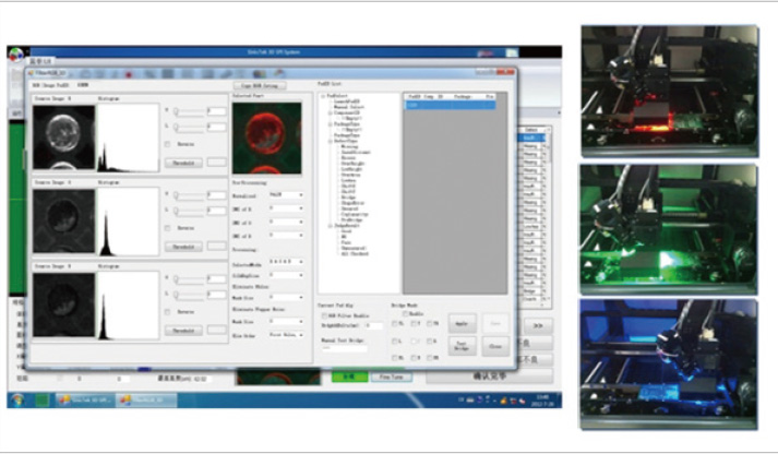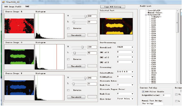 Patented RGB Tune function takes Red, Green and Blue images and with unique filter algorism, to solve solder bridge detection false alarm and relative zero surface uncertain issue. In the mean time, provide the 2D/3D measurements and image of printed solder paste. ooperate with 2D lighting sources avoids problems caused by the angle of the red RGB color distortion effect in solder; RGB tuning in Different PCB colors is more versatile ; Fulfill a variety of dispensing process testing ; greatly improve the equipment ( height ,volume , area ) epeatability accuracy.