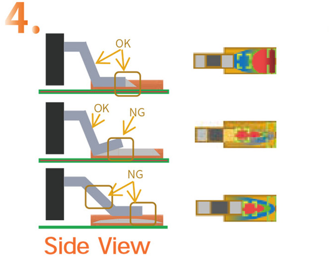 AOI uses telecentric lens without distortion effect, adopts multi-reference point calibration method, and automatic positioning of detection window, including double positioning of pad and body, which solves the problem of offsetcaused by board deformation and greatly reduces false alarms.