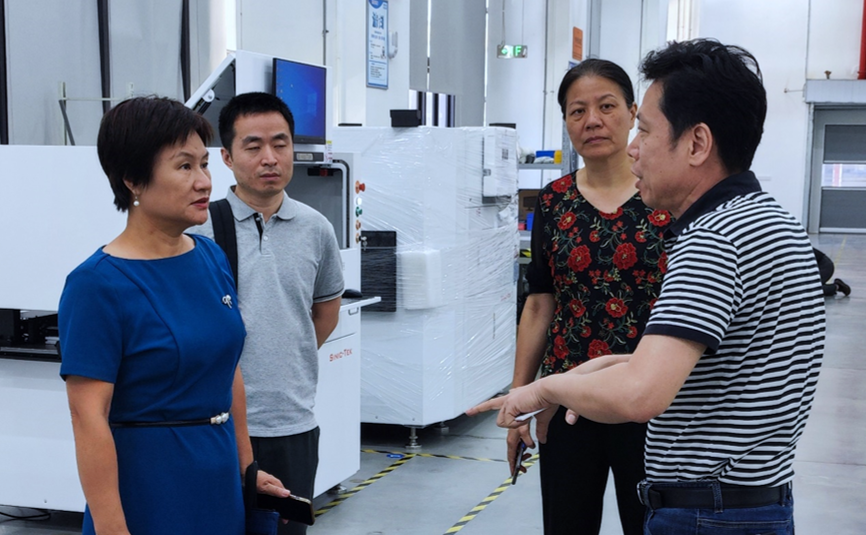 在公司領導的陪同下,黃慰萍女士一行參觀了思泰克科技園,詳細了解了公司的前沿技術和工藝流程。參觀過程中,領導一行對公司產品的技術水平和實際應用效果表示肯定,并鼓勵思泰克繼續加大技術研發投入,不斷提升產品的市場競爭力。